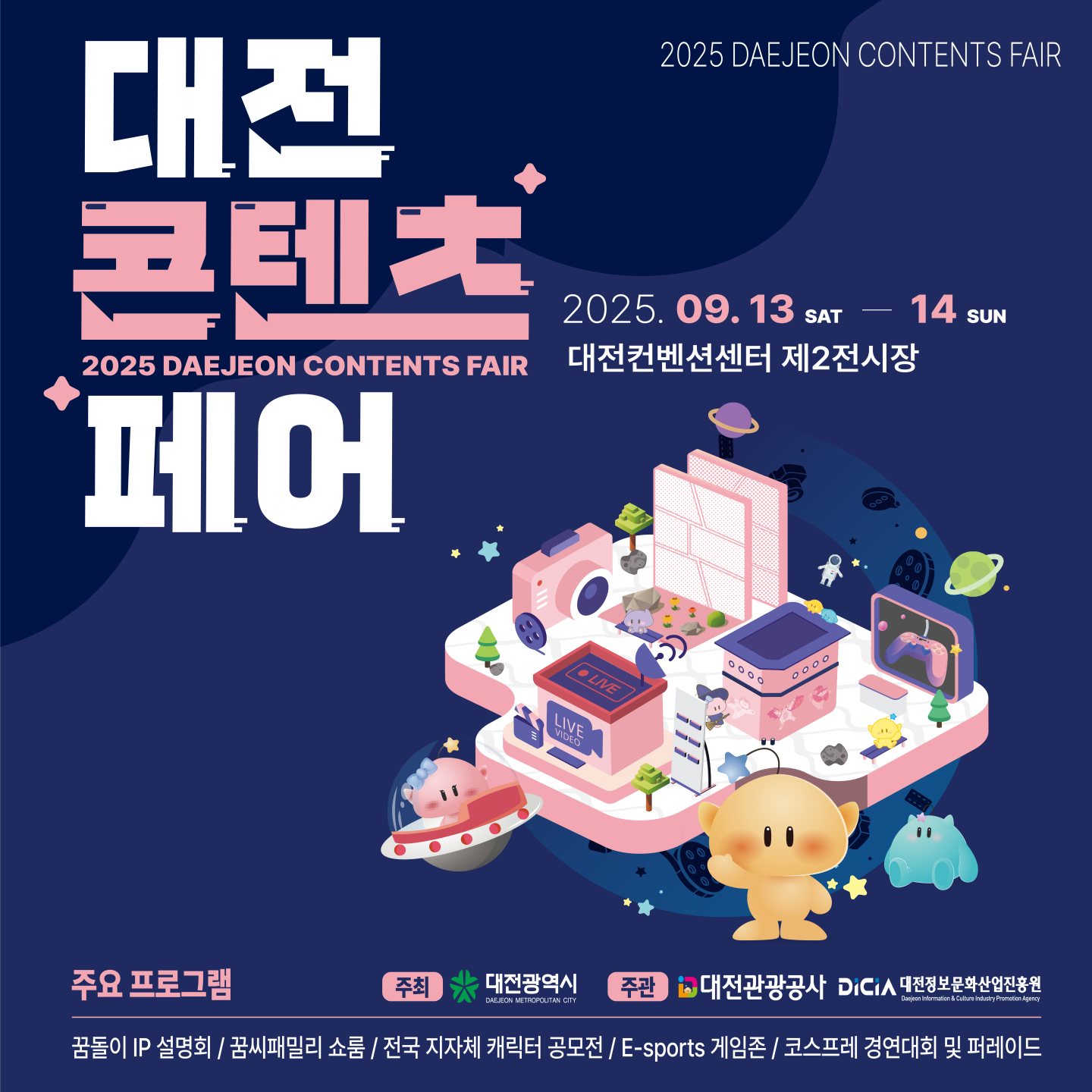 캐릭터, 일러스트, e스포츠 등 다양한 콘텐츠가 융합된 전시회로, 콘텐츠 산업의 트렌드를 이끄는 중부권 최대 규모의 비즈니스 플랫폼입니다.
